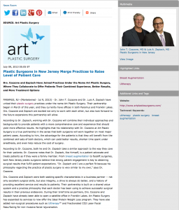 Drs. Cozzone and Zapiach have joined practices under the name Art Plastic Surgery, where they collaborate to offer patients their combined experience, better results, and more treatment options. Paramus, NJ – Dr. John T. Cozzone and Dr. Luis A. Zapiach have united their plastic surgery practices under the name Art Plastic Surgery. Their partnership began… Read More »